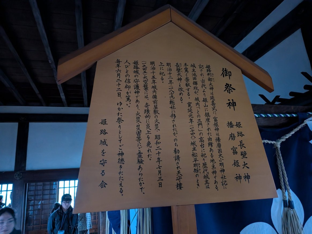 姫路城天守最上階には、**刑部神社(おさかべじんじゃ)**が祀られています。