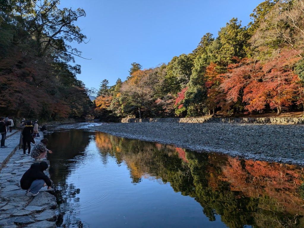 水面に映る木々の姿が美しく、内宮の中でも特に人気が高いスポット。