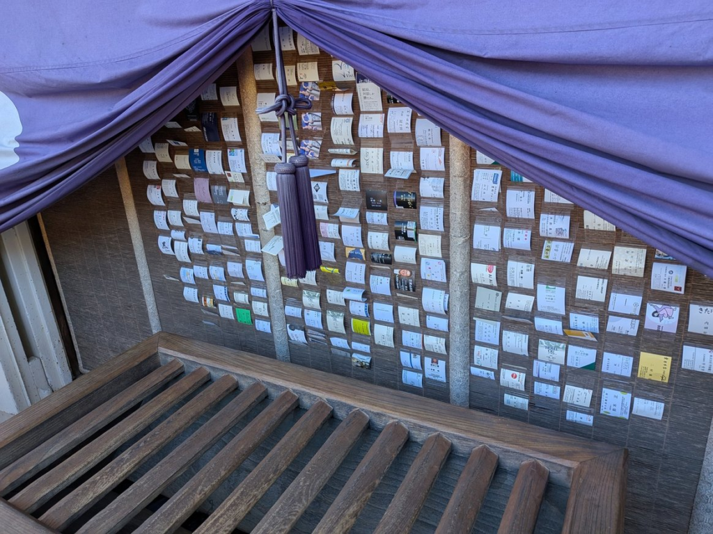 多くの人がこの風習を行うため、賽銭箱の周りは名刺でいっぱいになる光景が見られます。