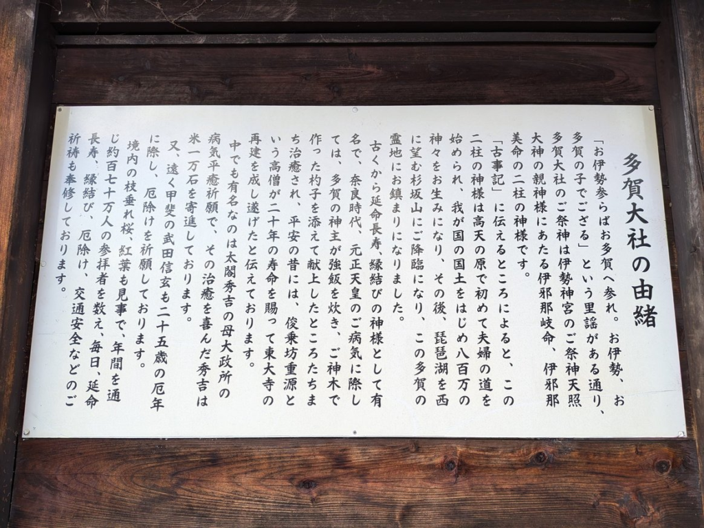 平安時代には「延喜式神名帳」にも名を連ねる名神大社として記録され、「お伊勢参りならお多賀参り」と言われるほど、伊勢神宮と並び称される信仰を集めました。