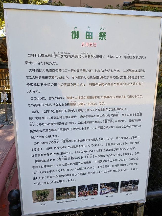 猿田彦神社は“農業の神”としての信仰もあり、豊穣を願う儀式が古式ゆかしく続けられています。