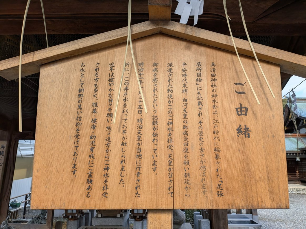 真清田神社の井戸は無病息災のパワースポットとして知られ、井戸を除き込み水面に映る自分の顔を見て祈る「井戸のぞき」という体験が可能です。