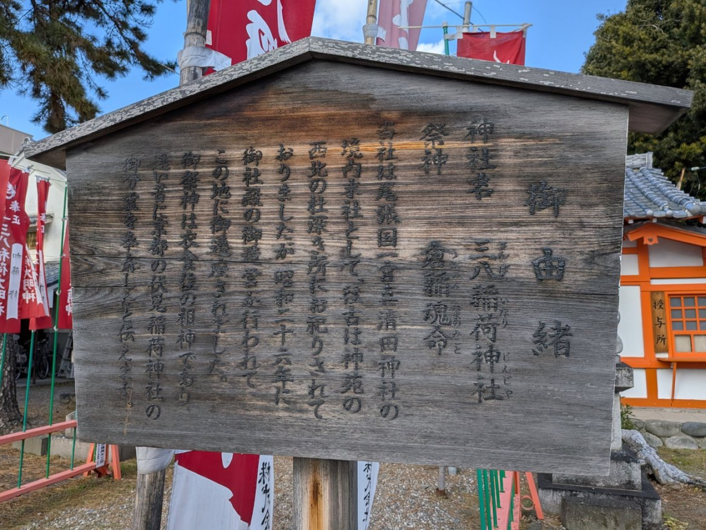 三八稲荷神社の名前の由来は戦前まで真清田神社の前で開かれていた織物を中心とした「三八市」という市に由来すると言われています。